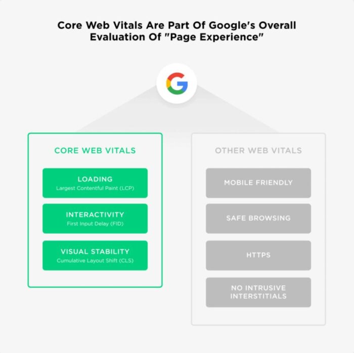 Deze Web Vitals zijn een set van factoren die onderdeel zijn de ervaring op de webpagina, zoals je op de onderstaande afbeelding kunt zien.